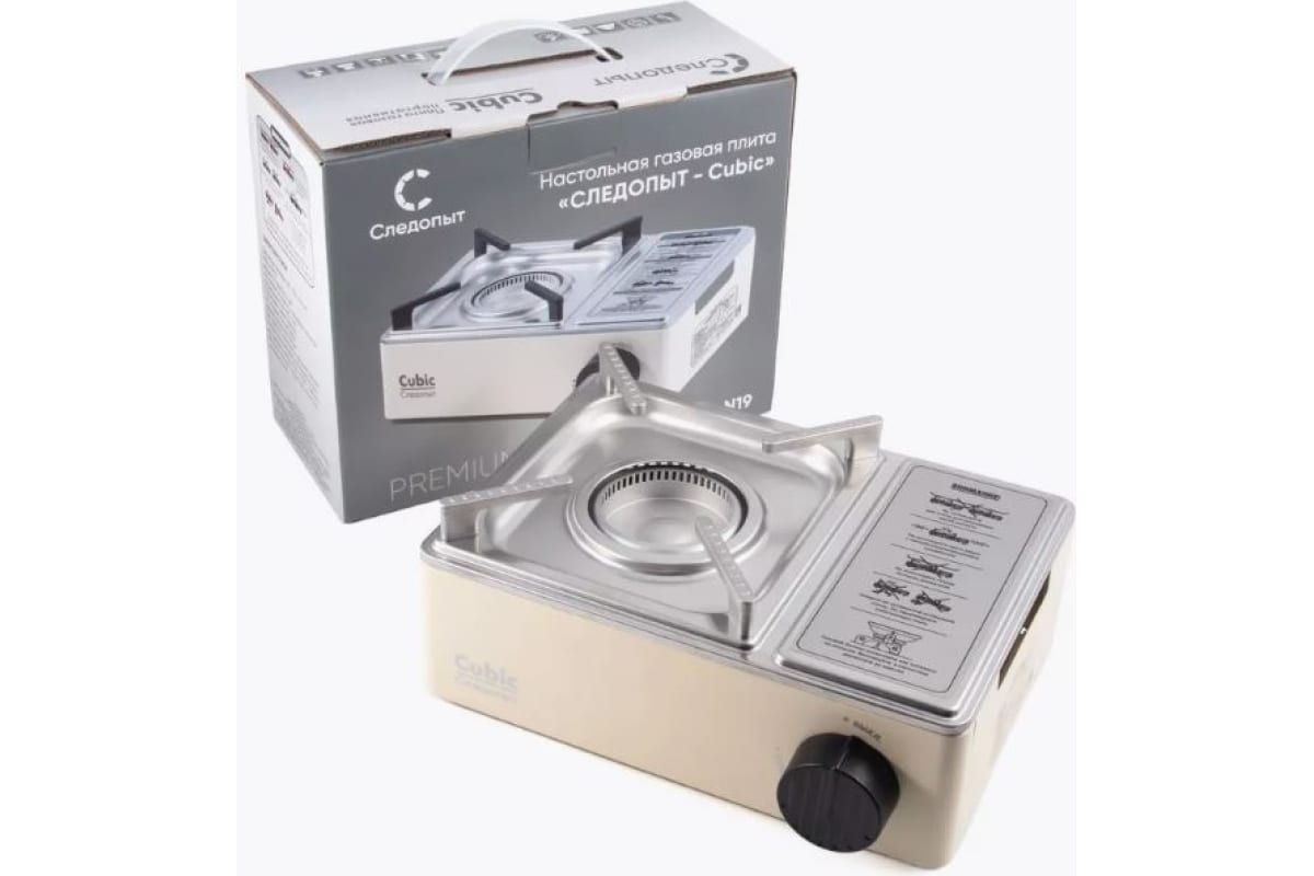 Плита оборудована одной горелкой с кольцевым образованием пламени, имеет пьезоэлектрический розжиг и блок управления подачи газа. Оборудованная магнитным клапаном(редуктором), в качестве топлива используются газовые смеси в баллонах с нажимным клапаном и цанговым захватом.