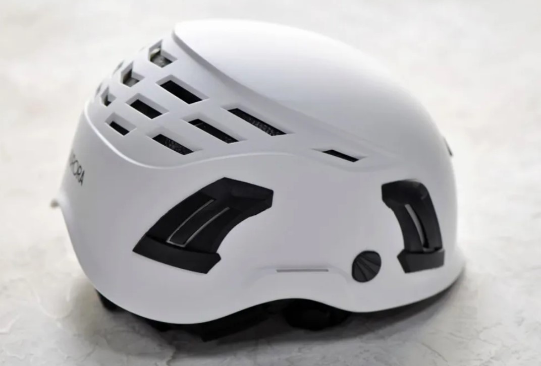 Оболочка защитной каски из ABS пластика, вспененный полистирол в качестве амортизирующего вкладыша.